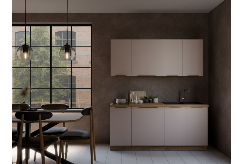 Zestaw modułowy w wymiarze 1,8m bez blatu kuchennego ( mamy możliwość rozbudowy zestawu na dowolny wymiar - baza szafek jest szeroka).