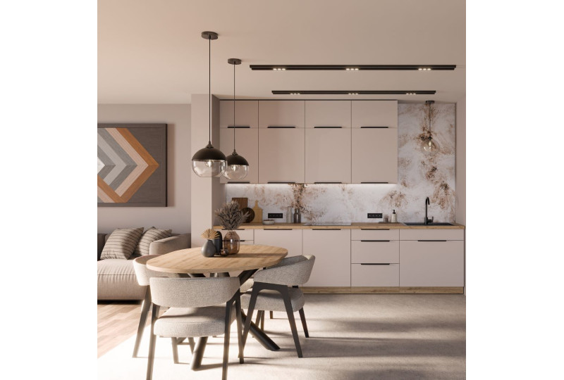 - Fronty szafek - płyta 16mm w kolorze cashmere, obrzeże to PCV 1mm