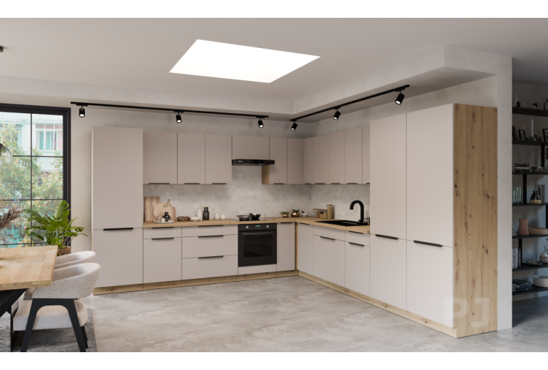 - Fronty szafek - płyta 16mm w kolorze cashmere, obrzeże to PCV 1mm