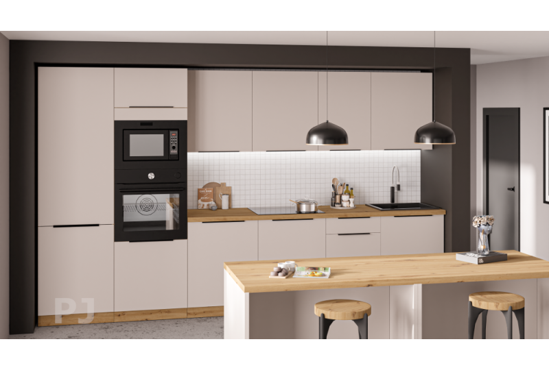 - Fronty szafek - płyta 16mm w kolorze cashmere, obrzeże to PCV 1mm