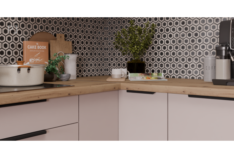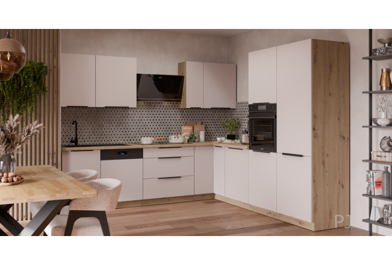 - Fronty szafek - płyta 16mm w kolorze cashmere, obrzeże to PCV 1mm