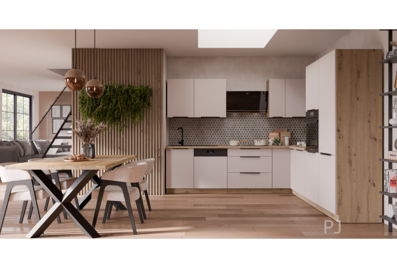 Zestaw modułowy w wymiarze 2,8m x 2,5m bez blatu kuchennego ( mamy możliwość rozbudowy zestawu na dowolny wymiar - baza szafek jest szeroka).